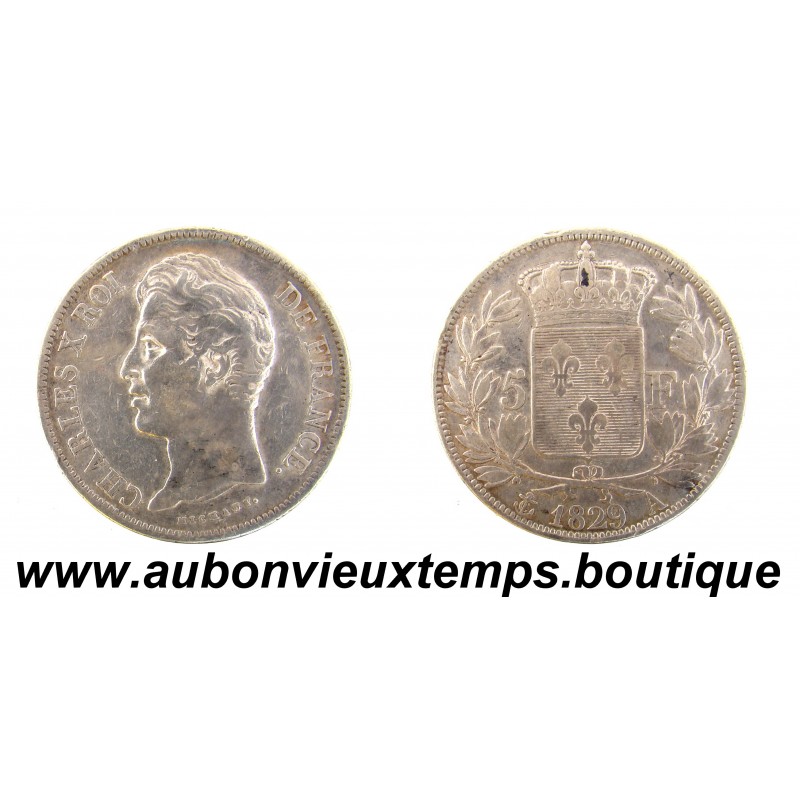 5 FRANCS Argent 900 ‰ 1829 A CHARLES X - 2ème Type DIM : 37 mm Poids : 24.75 g Cotation TTB Gadoury 2025 644 : 100€ J.M. 2010 669.28 : 152€ LE FRANC 2023 311.27 : 80€