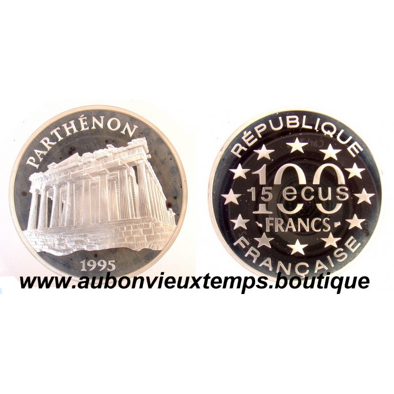 100 FRANCS - 15 ECUS 1995 MONUMENTS DE L'EUROPE - PARTHENON ARGENT BE RARE 20 000 ex ARGENT 900/1000 DIM : 37 mm POIDS : 22.20 g REF : JM 1720.1 Cours au 4.02.2026 : 50.70€