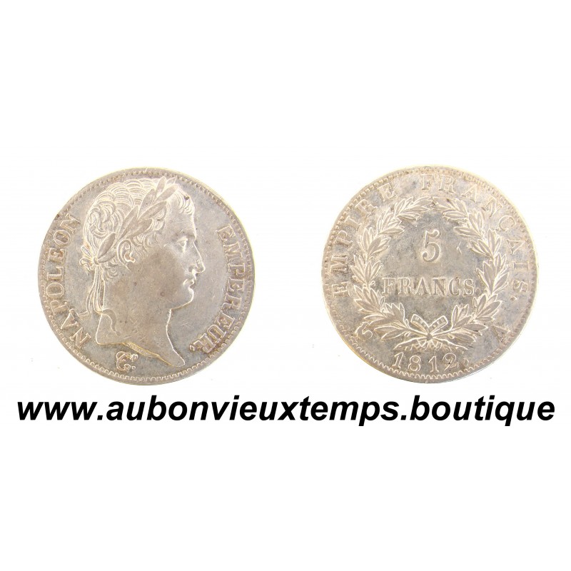5 FRANCS Argent 900 ‰ 1812 A NAPOLEON 1er - TETE LAUREE DIM : 37 mm Poids : 24.70 g Cotation SUP- Gadoury 2025 584 : 235€ J.M. 2010 594.45 : 508€ LE FRANC 2023 307.41 : 215€