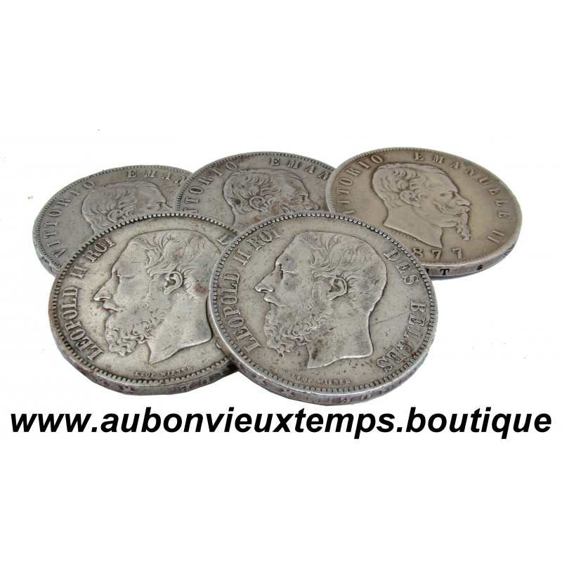 LOT 5 MONNAIES de 5 FRANCS et 5 LIRES Argent 900 ‰ BELGIQUE et ITALIE Cours au 10.10.2025 : 32.50€/U soit 162.50€ le LOT Nota : IMPORTANT, cet article ne pourra être vendu qu’avec un PAIEMENT PAYPAL ou un VIREMENT BANCAIRE, et un envoi UNIQUEMENT par MONDIAL RELAY, sauf pays non desservis, sinon les COMMANDES seront REFUSEES.