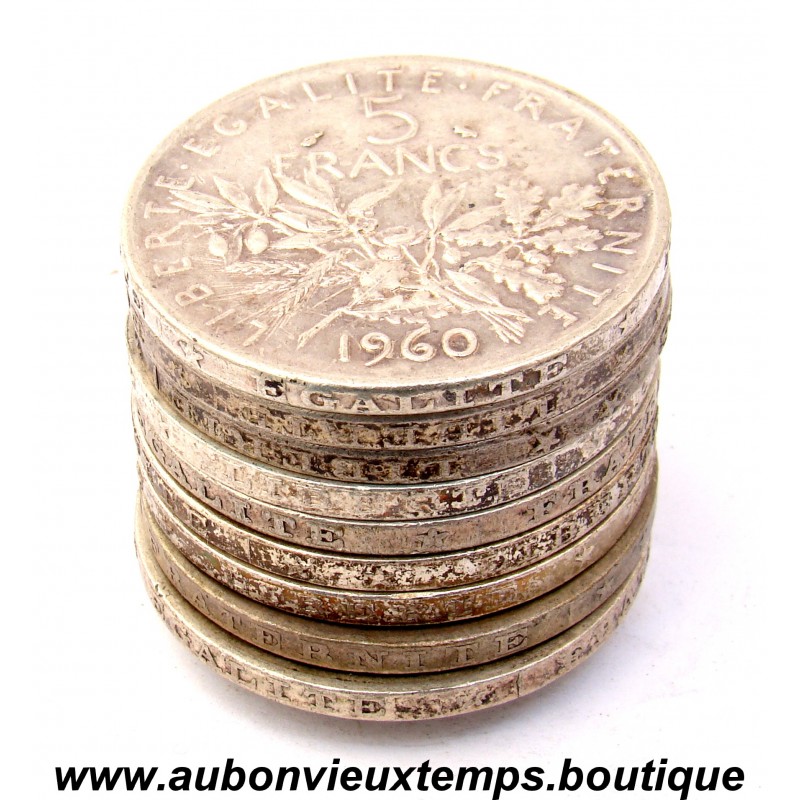 LOT 10 X 5 FRANCS Argent 835 ‰ SEMEUSE DIM : 29 mm Poids : 120 g Cours au 6.04.2026 : 21€/U soit le lot 210€ Nota : IMPORTANT, cet article ne pourra être vendu qu’avec un paiement par PAYPAL ou VIREMENT BANCAIRE IMMEDIAT, et un envoi UNIQUEMENT par Mondial Relay, sauf pays non desservis, sinon les COMMANDES seront REFUSEES. Note: important, this item can only be sold with a payment by PayPal