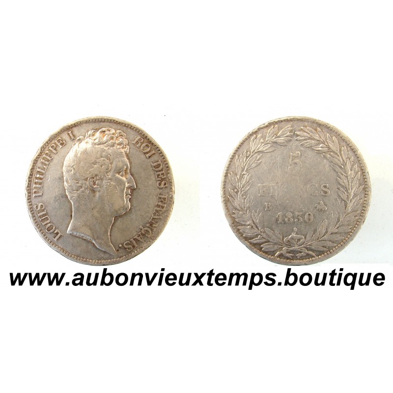 5 FRANCS Argent 900 ‰ 1830 B LOUIS PHILIPPE 1er - TETE NUE - Avec le I et TRANCHE en CREUX DIM : 37 mm Poids : 24.70 g Cotation TB+ Gadoury 2025 676 : 50€ J.M. 2010 699.2 : 71€ LE FRANC 2023 315.2 : 58€ Cours au 9.04.2026 : 48.50€