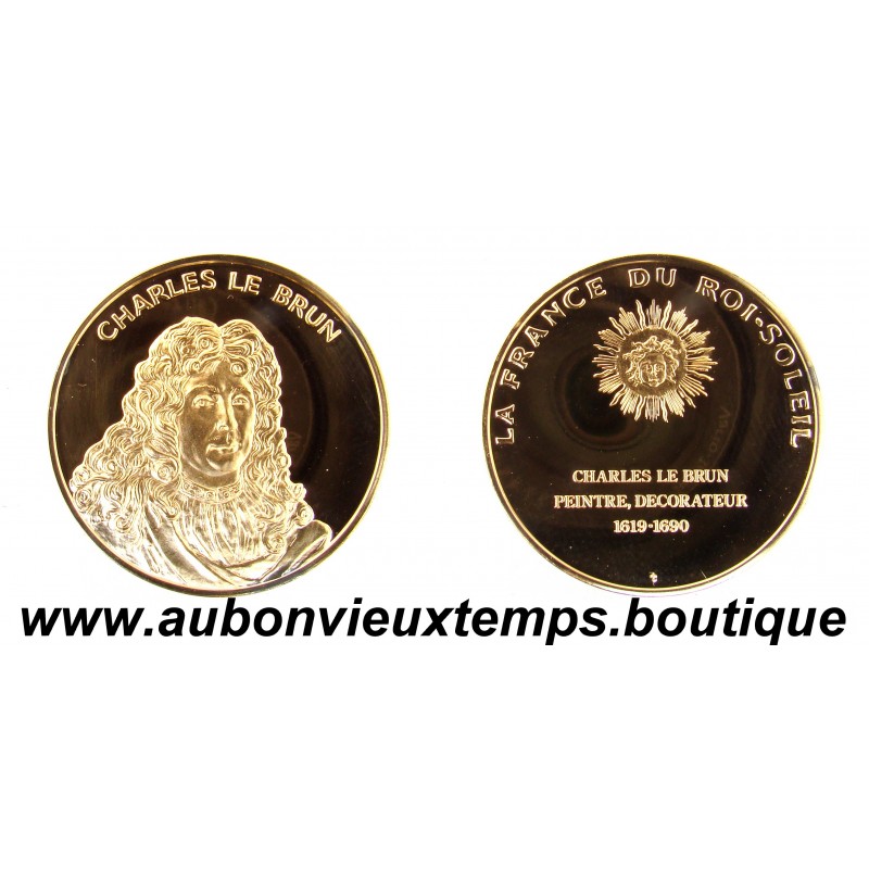 MEDAILLE en VERMEIL BE - Le BRUN - La FRANCE du ROI SOLEIL DIM : 39 mm POIDS : 24.65 g Sous capsule : 31.45 g Tranche : lisse + VERMEIL + losange + poinçon 77P + poinçon crabe ( ARGENT 800/1000 et OR 750/1000 ( 18 carats )) Cours de l'argent au 7.10.2025 : 27.60€