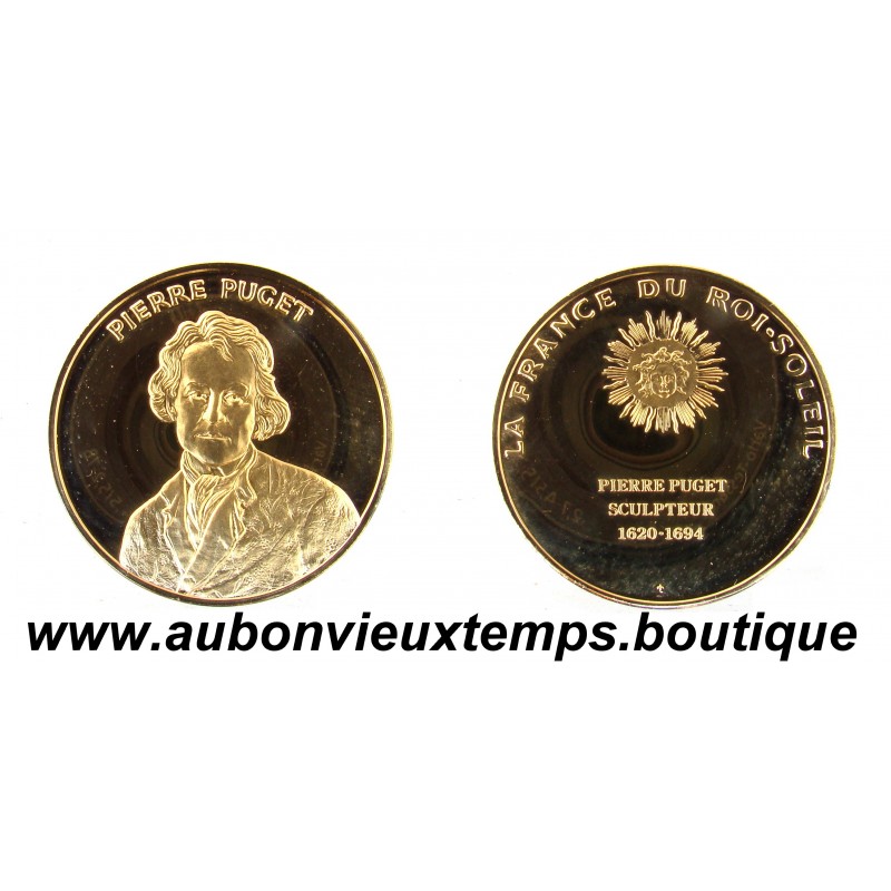 MEDAILLE en VERMEIL BE - PUGET - La FRANCE du ROI SOLEIL DIM : 39 mm POIDS : 24.55 g Sous capsule : 31.35 g Tranche : lisse + VERMEIL + losange + poinçon 77P + poinçon crabe ( ARGENT 800/1000 et OR 750/1000 ( 18 carats )) Cours de l'argent au 7.10.2025 : 27.60€