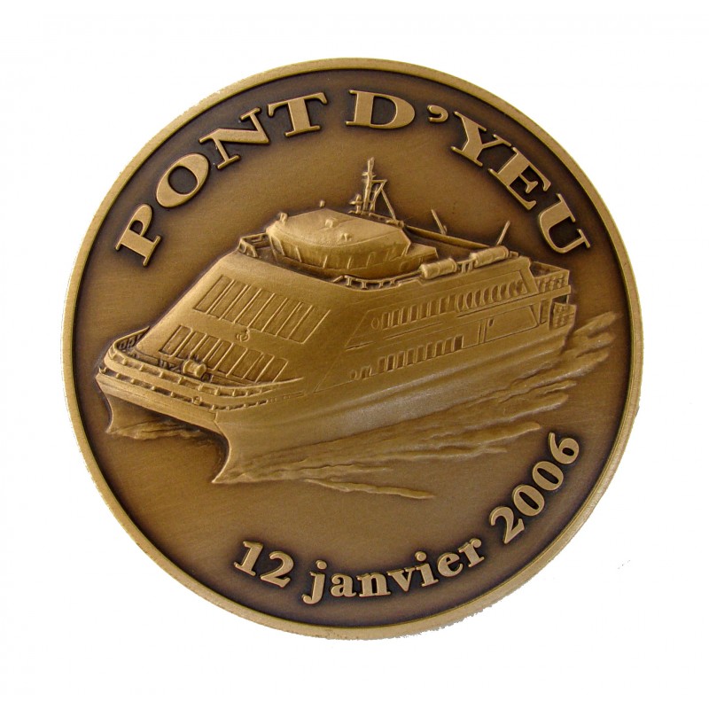 MEDAILLE en BRONZE le PONT d'YEU - ILE d'YEU 2006 - CONSEIL GENERAL VENDEE - fabriquée à Saumur par PICHARD-BALME DIM : 70 mm POIDS : 181 g avec le coffret : 251 g