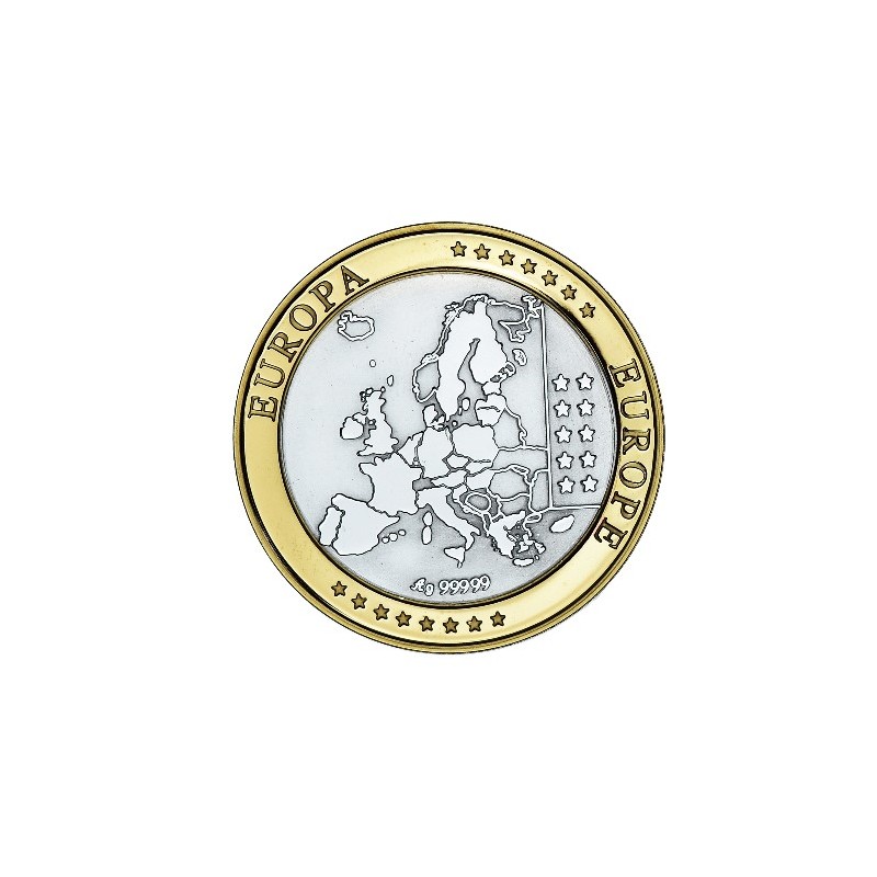 MONNAIE LINGOT BE Argent 999‰ - FINLAND POIDS : 15.90 g avec le boitier 35.40 g DIM : 36 mm Avers : FINLAND. Description : Les différents monuments et personnages important symboles de la Finlande. Revers : Cartographie des pays européens. EUROPE ** EUROPA *** Argent 999‰ Plaqué Or 999‰ Cours au 12.12.2025 : 29€ Nota : fissure sur la face arrière du boitier