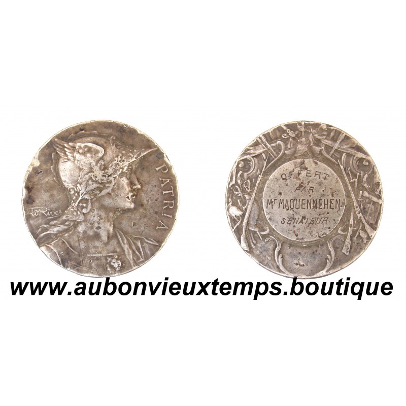 MEDAILLE Argent 1er Titre 950 ‰ ( Corne 1 ARGENT ) ND MARIANNE CASQUEE - PATRIA - OFFERT par Mr MAQUENNEHEN Sénateur - Ao Rivet DIM : 40 mm POIDS : 35.60 g Cours au 29.01.2026 : 110€