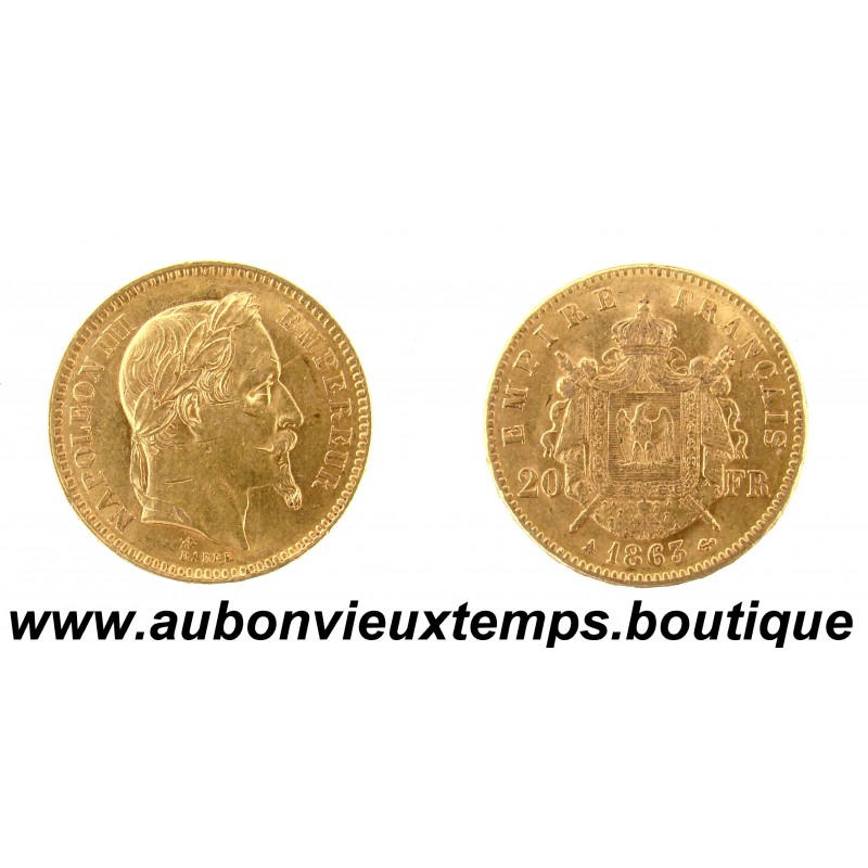 20 FRANCS Or 900‰ 1863 A NAPOLEON III DIM : 21 mm POIDS : 6.45 g Cours au 23.01.2026 : 812.50€ Nota : IMPORTANT, cet article ne pourra être vendu qu’avec un VIREMENT BANCAIRE, et un envoi UNIQUEMENT par MONDIAL RELAY, sauf pays non desservis, sinon les COMMANDES seront REFUSEES. Note: important, this item can only be sold with a payment by PayPal
