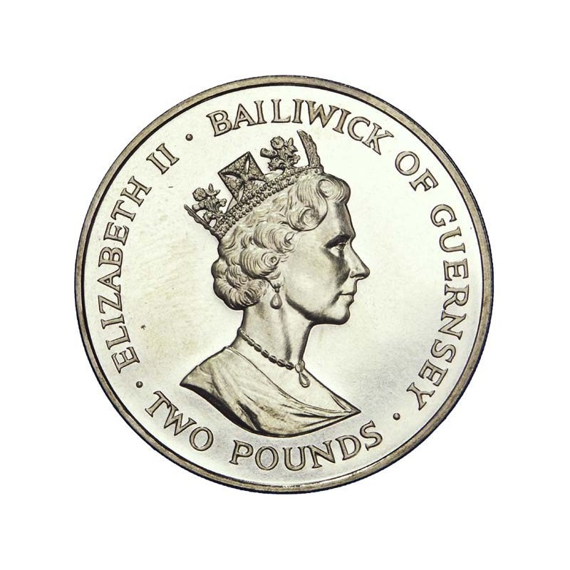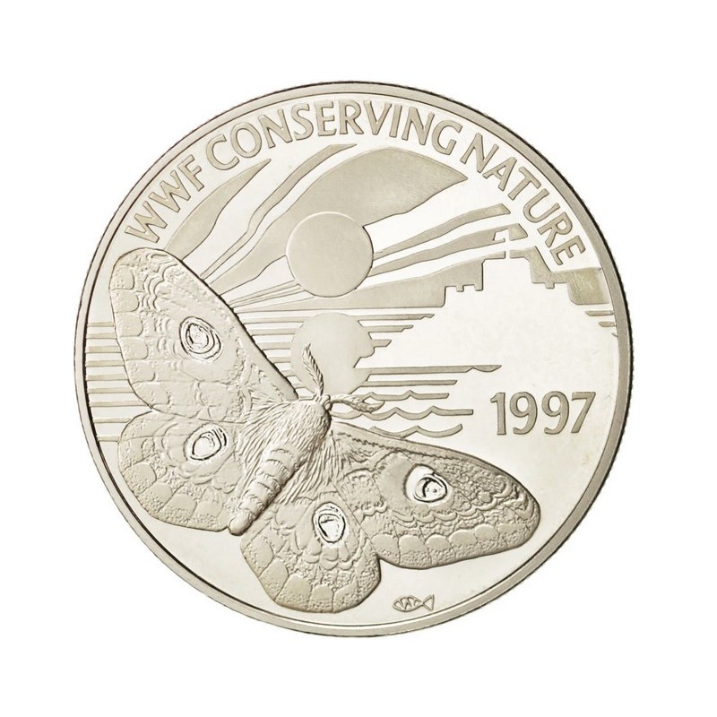 TWO POUNDS Argent 925‰ 1997 ELIZABETH II - CONSERVATION de la NATURE - BAILIWICK of GUERNESEY RARE 15 000 ex POIDS : 28.20 g DIM : 39 mm Avers : ELIZABETH II · BAILIWICK OF GUERNSEY / RDM / · TWO POUNDS ·. Description : Portrait de la reine regardant vers la droite. Revers : WWF CONSERVING NATURE / 1997. Description : Papillon.