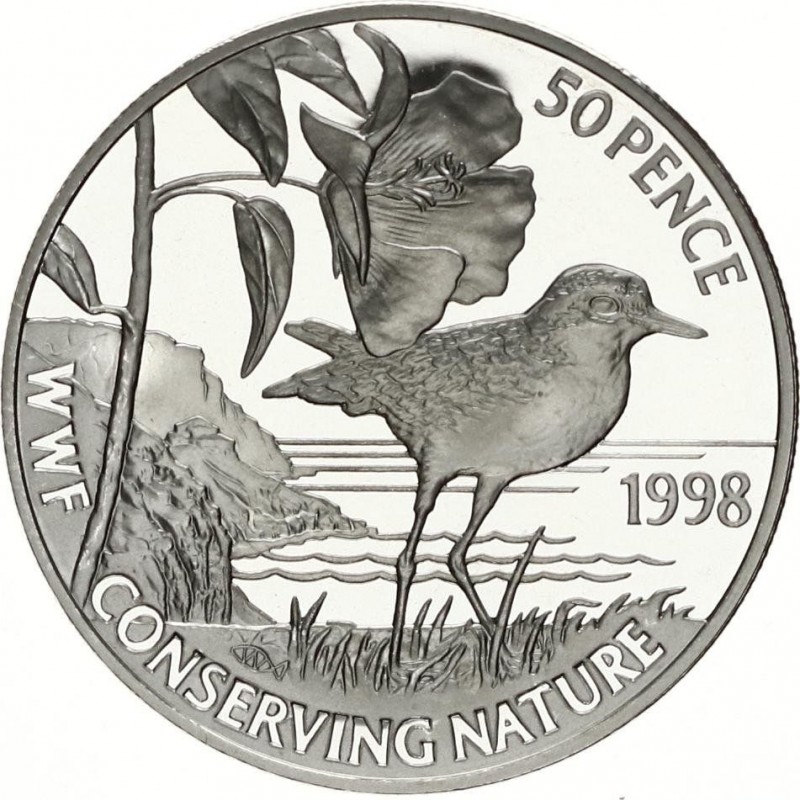 50 PENCE Argent 925‰ 1998 ELIZABETH II - CONSERVATION de la NATURE - ST HELENA POIDS : 28.30 g DIM : 39 mm Cours au 3.11.2025 : 36.40€ Avers : ELIZABETH II ST.HELENA. Description : Buste couronné à droite de la reine Élisabeth II. Revers : WWF CONSERVING NATURE / 50 PENCE / 1998. Description : Le pluvier de Sainte-Hélène ( Charadrius sanctaehelenae ) avec sa fleur.