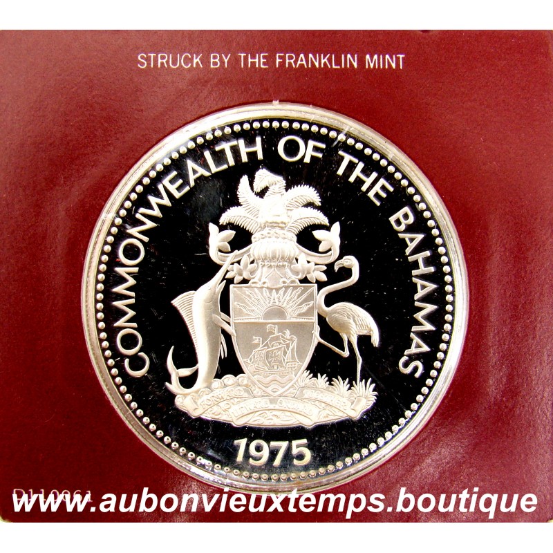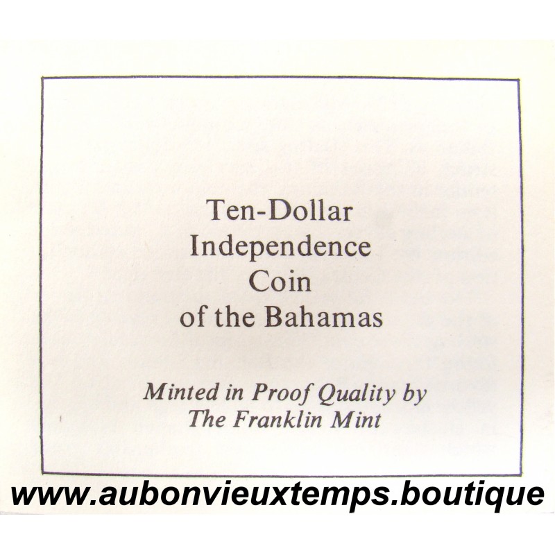 10 DOLLARS Argent 925 ‰ 1975 ANNIVERSAIRE de l'INDEPENDANCE - BAHAMAS RARE 63 000 ex DIM : 50 mm POIDS : 50.15 g et 129 g avec le coffret et le certificat Cours au 27.01.2026 : 144.50€