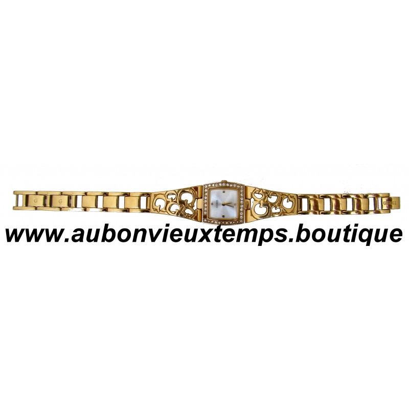 MONTRE FEMME CARREE GUESS Plaqué OR avec BRILLANTS SWAROVSKI - à QUARTZ DIM : 194 mm x 21 mm POIDS : 48 g