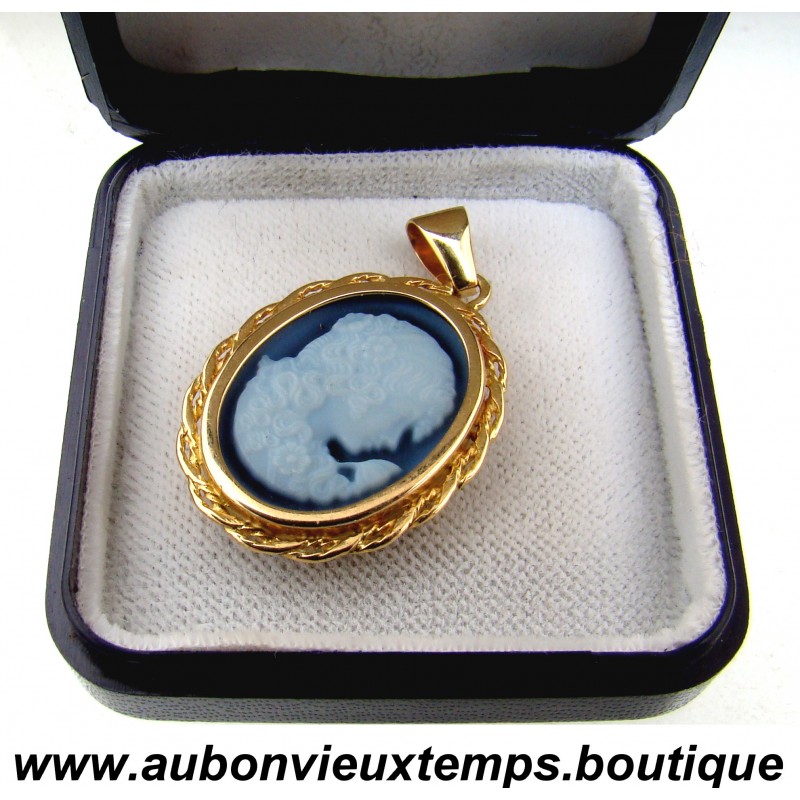 PENDENTIF OR 750 ‰ ( 18 Carats ) et CAMEE DIM : 31 mm x 19 mm POIDS : OR 2.10 g - CAMEE 7.65 g et 14.10 g avec la boite Cours au 26.01.2026 : 224.00€