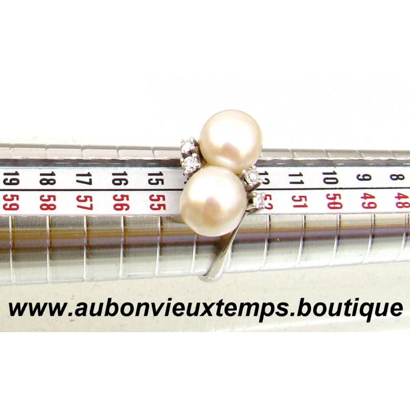 BAGUE OR Blanc 585 ‰ ( 14 Carats ) avec PERLES POIDS : 4.40 g
