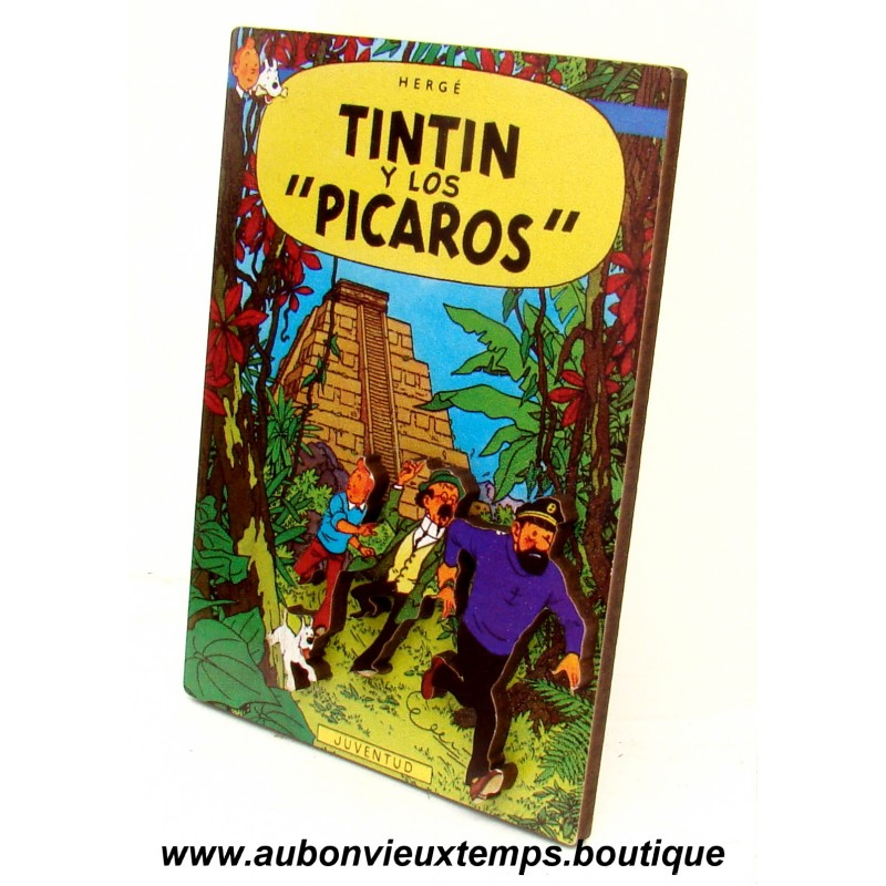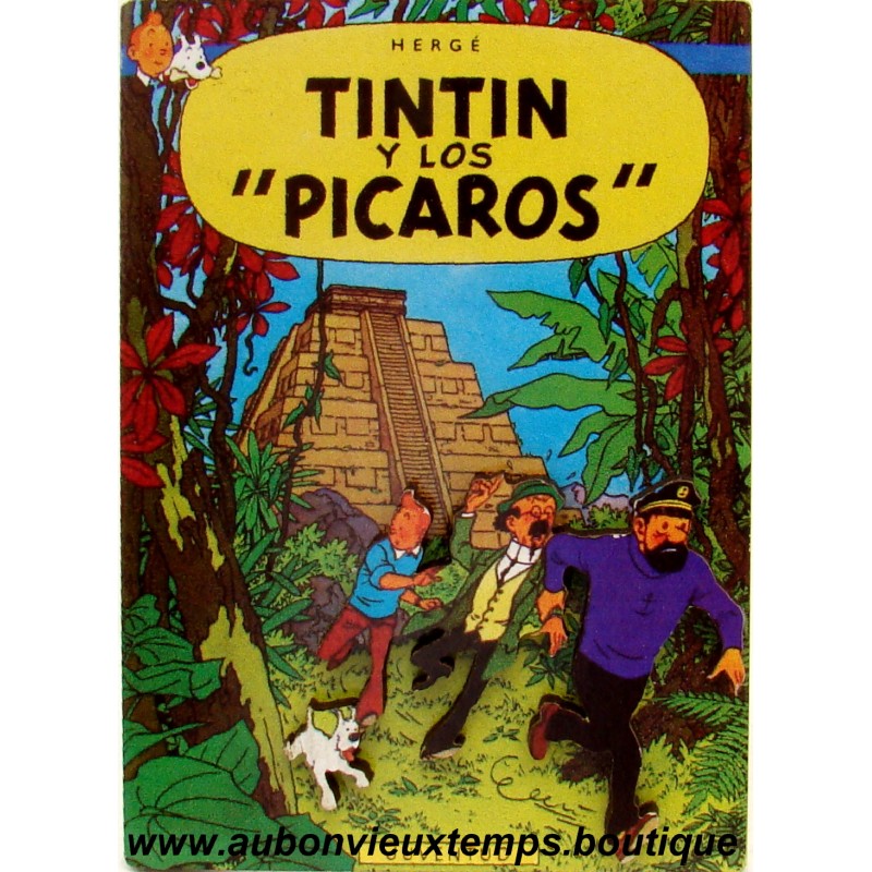 MAGNET en RELIEF avec SUPPORT BOIS - Les AVENTURES de TINTIN - TINTIN y los PICAROS DIM : 93 mm x 66 mm POIDS : 33 g