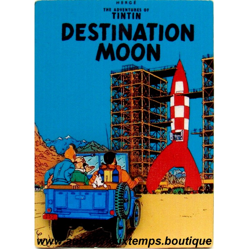 MAGNET en RELIEF avec SUPPORT BOIS - Les AVENTURES de TINTIN - DESTINATION MOON DIM : 93 mm x 66 mm POIDS : 33 g