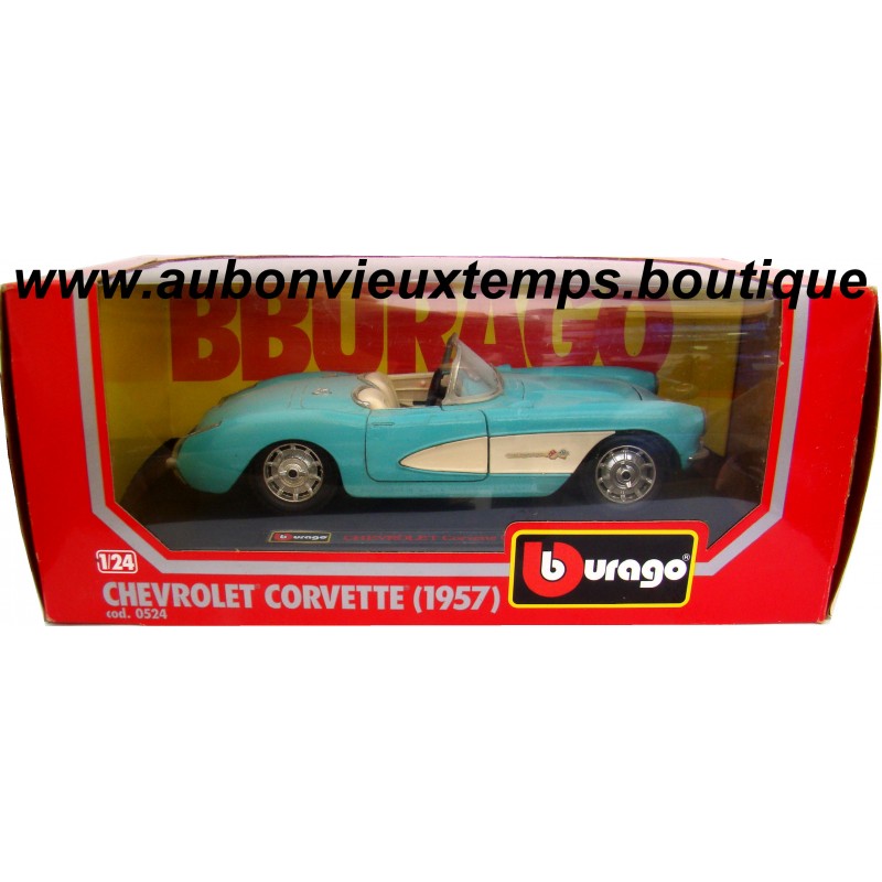 BBURAGO 1/24 CHEVROLET CORVETTE 1957 Réf : 0524 DIM : 178 mm POIDS : 415 g avec la boite Nota : micro-bulles sur peinture