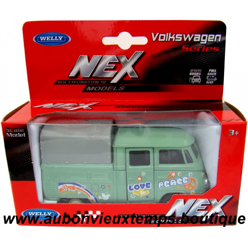 WELLY -NEX 1/38 VOLKSWAGEN TRANSPORTER T1 DOUBLE CABINE PICK-UP SOFT TOP 1963 Réf : 43603 DIM : 113 mm POIDS : 183 g avec la boite