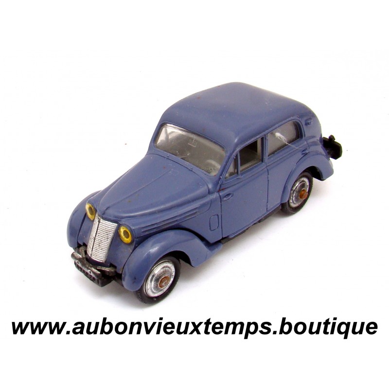 NOREV 1/43 RENAULT JUVAQUATRE 1946 Réf : 10 DIM : 85 mm POIDS : 21 g Nota : manque malle arrière et embouts latéraux des pare chocs avant et arrière